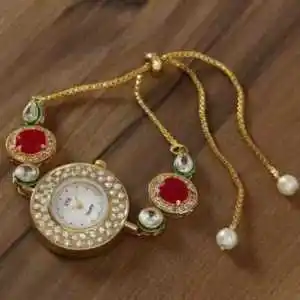 This designer watch with ruby and CZ stones. It is the best option for a unique valentine gift for girlfriend. The watch is round-shaped and studded with stones, which adds to its beauty. It also comes with a golden adjustable chain.