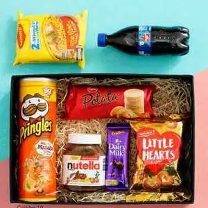 Gift this food hampers for your every-time food boyfriend. As its a certified food hamper with a perfect solution for any craving. This Box contains bluff, coconut chips, chocolate, oat cookies, and many more food items. You can make it personalised with a photo frame theme poster on the front page of the hamper.