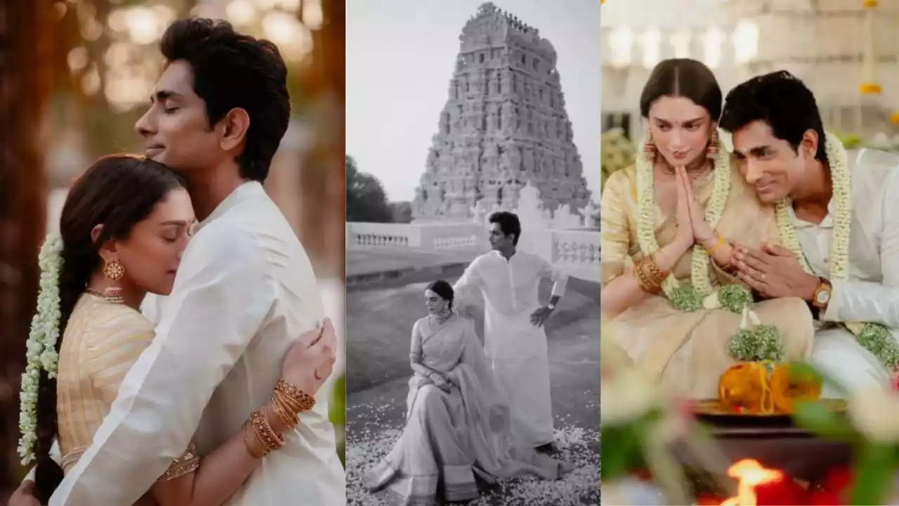 Aditi Hydari met actor Siddharth while filming Maha Samudram in 2021, and they started dating later that year. The couple announced their engagement on March 28, 2024, and were married on September 16, 2024. The couple announced their union with a series of beautiful pictures on Instagram, with the caption, "You are my Sun, my Moon, and all my Stars…’ To being Pixie Soulmates for eternity…to laughter, to never growing up…To Eternal Love, Light & Magic ❤️Mrs & Mr Adu-Siddhu 💫."