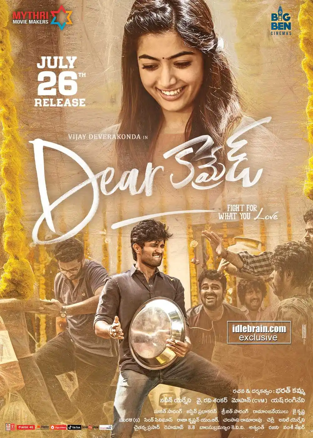 "Dear Comrade" is a 2019 Indian Telugu romantic action drama, directed by Bharat Kamma and starring Vijay Deverakonda and Rashmika Mandanna. It addresses new-age love, anger management, and sexual harassment in sports. The protagonist, Bobby, a student union leader, is in love with Lilly, a state-level cricket player. After she rejects him due to his violent tendencies, he leaves home in search of inner peace.